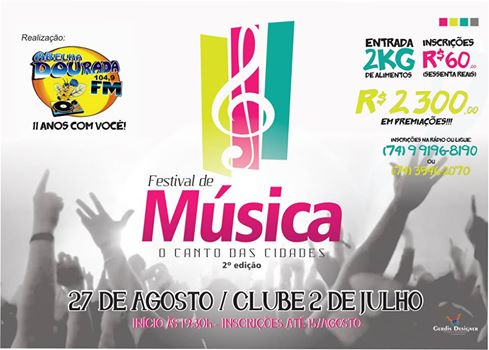Foi realizado, na noite do sábado (01/08) o I Festival Regional Beneficente de Música - O Canto das Cidades, promovido pela Rádio Comunitária Abelha Dourada FM. O evento comemorou os 10 anos de fundação da emissora e foi realizado no Clube 2 de Julho.